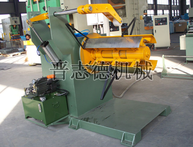 而油壓重型材料架則是晉志德機械針對重型厚板卷料放料、開卷而專門研發、生產的一種高效實用型材料架,它是傳統重型材料架的升級改進型,其將手搖漲縮脹緊結構改用油壓站式油壓漲縮方式,并在材料架機架上加裝壓料裝置,對卷料進行實時的壓時,通過上述改進可快速實現卷料的脹緊和穩定高效的開卷。