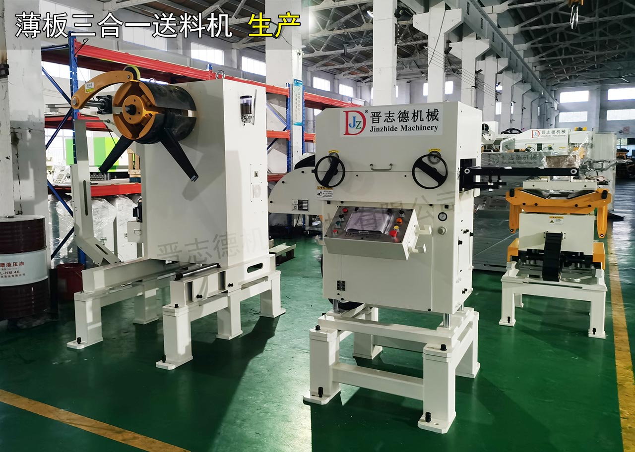 目前,國(guó)內(nèi)送料機(jī)生產(chǎn)廠家很多,但能生產(chǎn)大型沖壓自動(dòng)化設(shè)備的企業(yè)屈指可數(shù),而且高端送料機(jī)少之又少。為此,晉志德機(jī)械推出三合一送料機(jī),其集料架、整平、送料于一體,配有晉志德自開發(fā)的控制模快的裝置,相較于傳統(tǒng)材料架+整平機(jī)+送料機(jī)分體組成的沖壓生產(chǎn)線,使用三合一送料機(jī)能大的節(jié)省廠房空間、提高沖壓成品品質(zhì)、簡(jiǎn)化操作流程,是目前為沖床材料供給的佳自動(dòng)化模式。